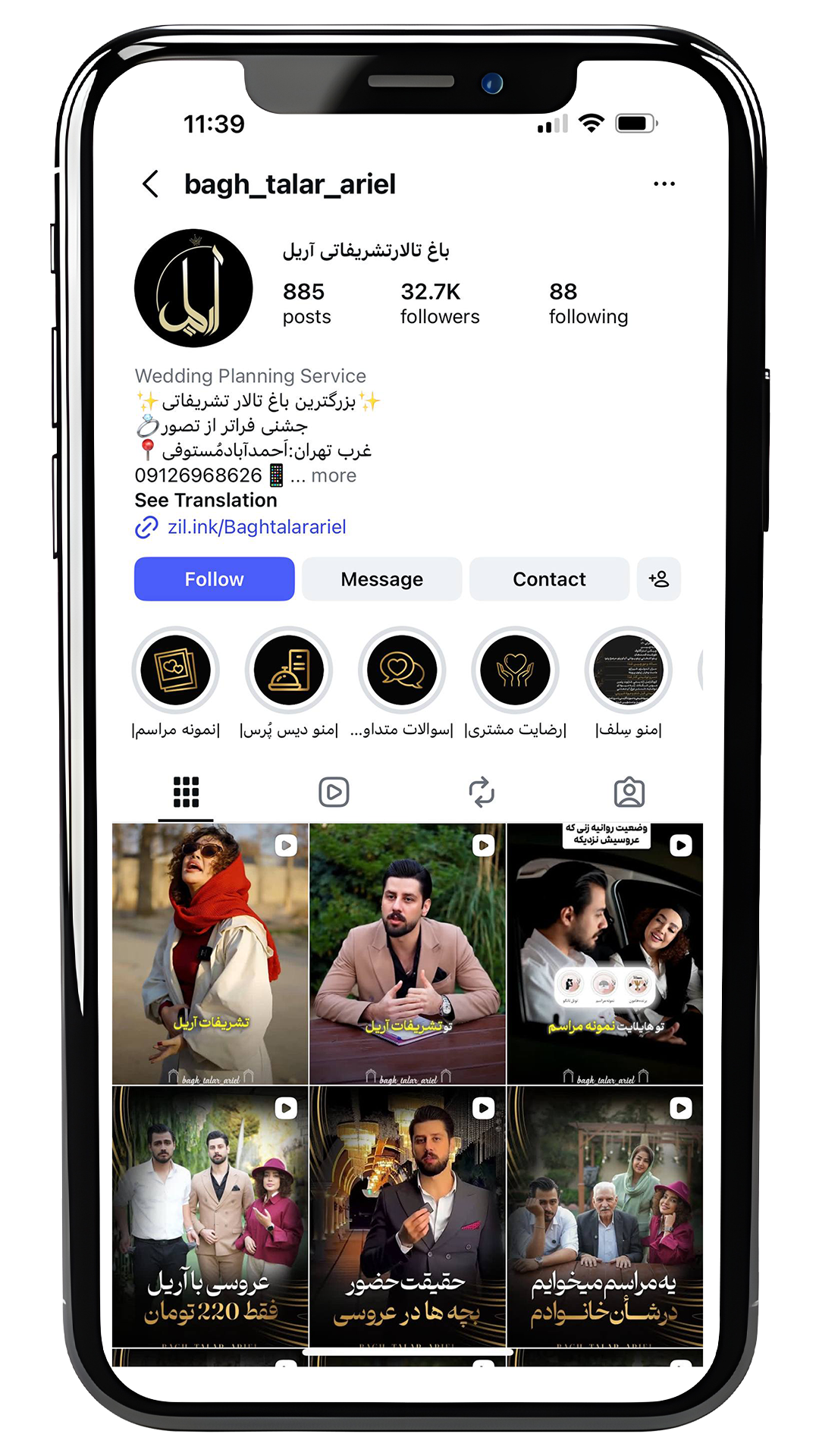 خدمات انجام شده برای پیج خدماتی تشریفات آریل