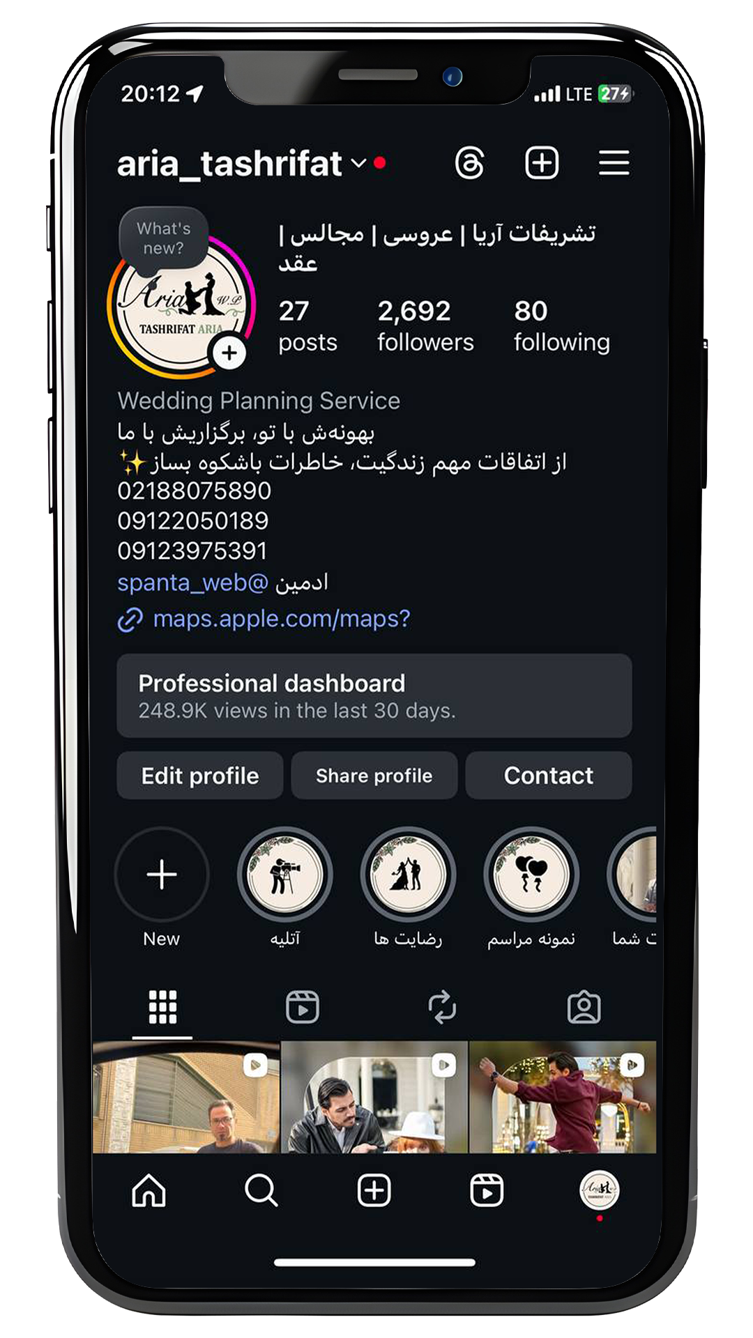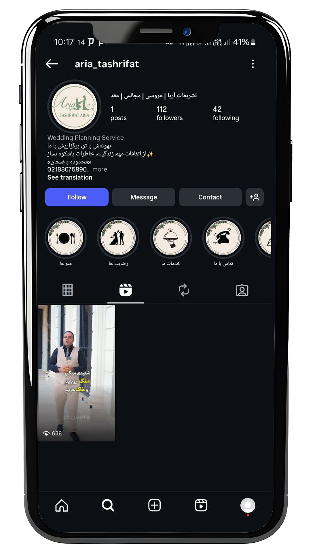 خدمات انجام شده برای پیج خدماتی تشریفات آریا