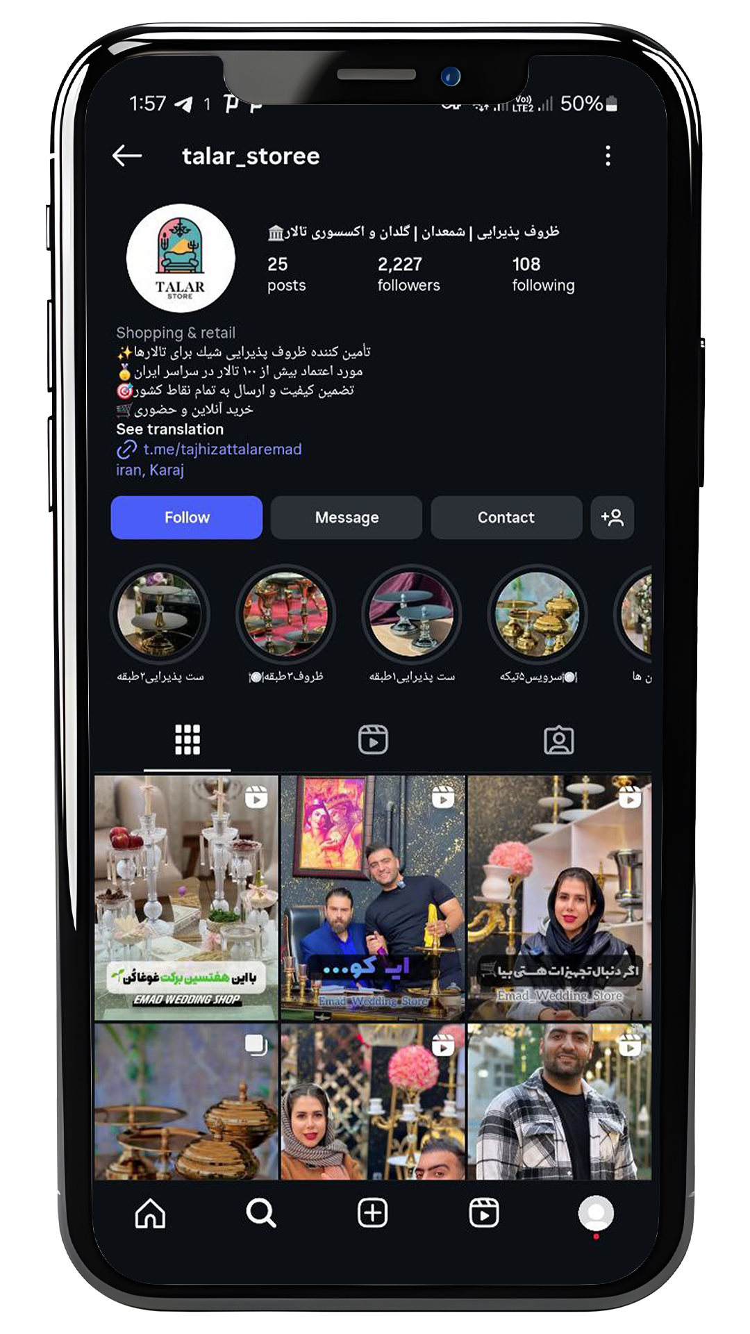 خدمات انجام شده برای پیج فروشگاهی تالار استور